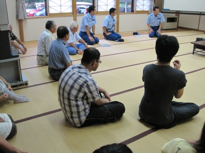 7月10日 総務部で現地研修会をしました。 各地区の自治会館をめぐり、 途中 大雨による土砂くずれ を見てまわりました。 弥左衛門滝・善吉沼をまわり、 元田沢地区 龍雲寺にて 座禅・説法をうけ、 有意義な研修会となりました。・・・・が、 正直 とっても 暑かった ((+_+))