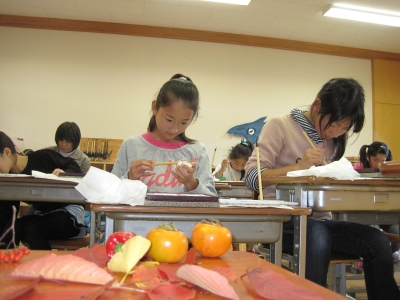 教育力向上事業として、 田沢小学校の児童を対象に 「絵手紙教室」をしました。